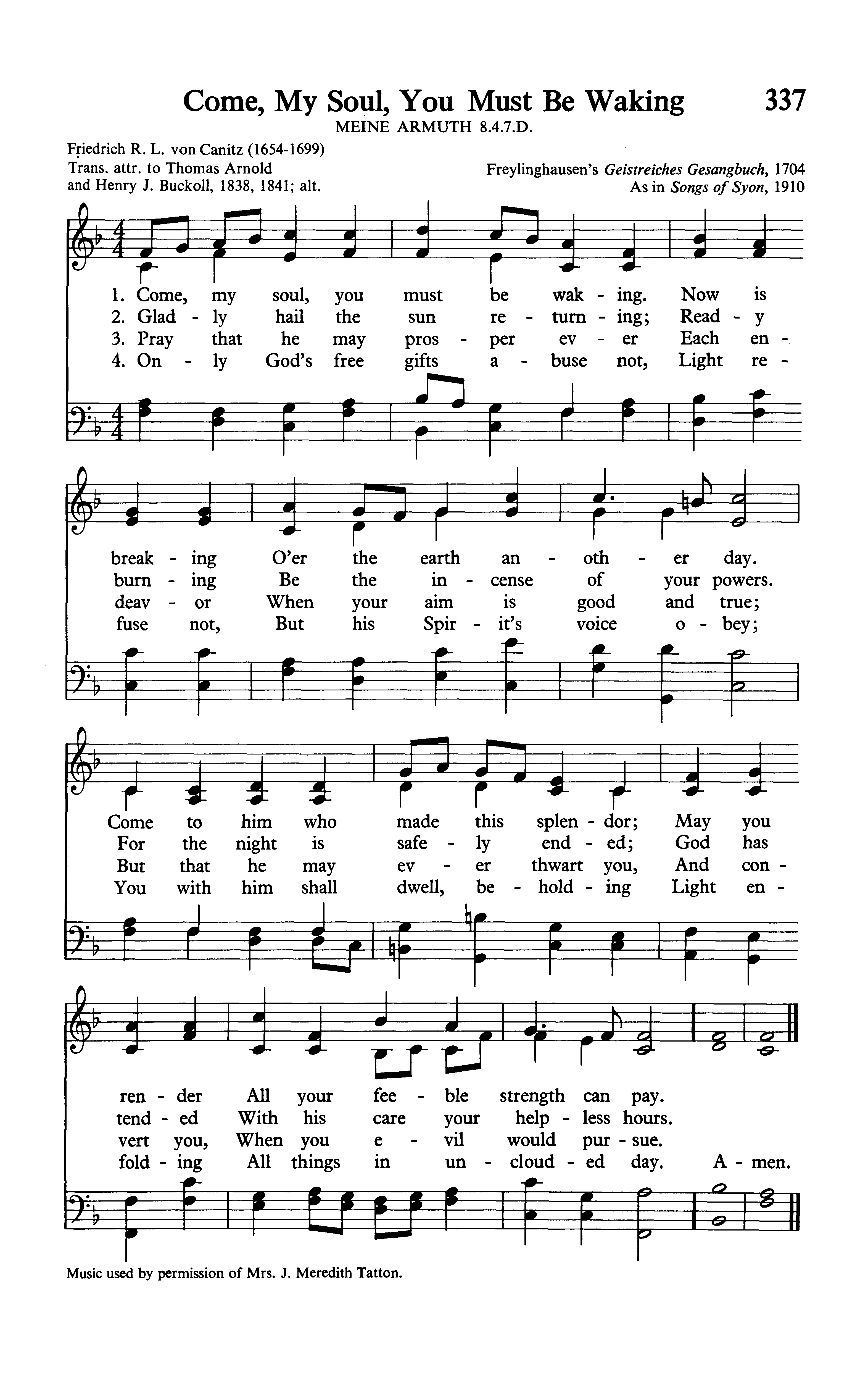 Historically, this hymn belongs to a long tradition of morning songs used in both private devotion and congregational worship. Canitz writes with the reflective tone typical of early German pietism, calling believers to approach each day with sobriety, gratitude, and trust. The hymn’s steady rhythm and thoughtful wording help shape a prayerful mindset. It encourages the singer to begin the day with praise and to depend on divine guidance for all that follows.