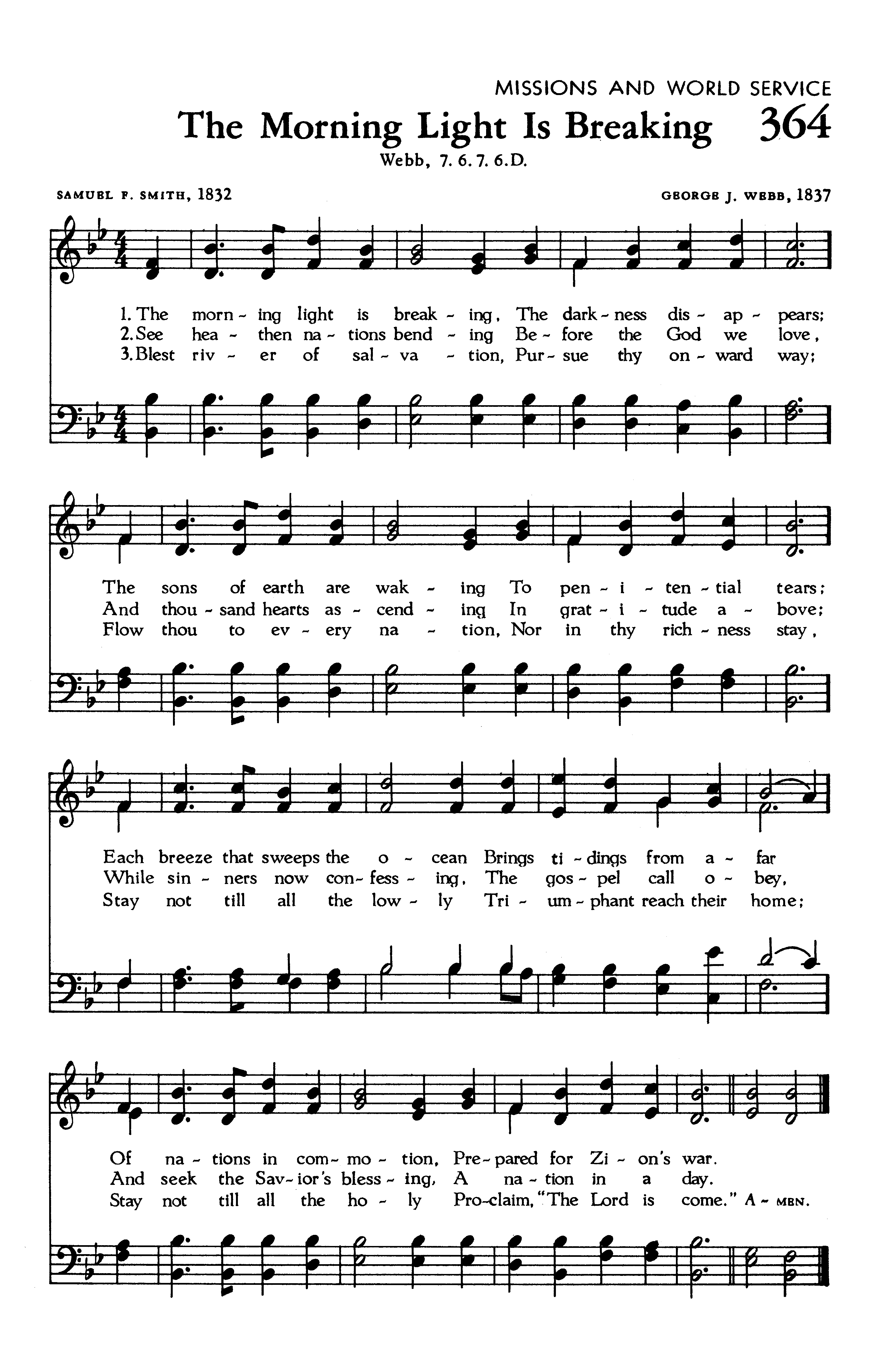 This missionary hymn reflects the rising hope of the gospel spreading across the world. Samuel Francis Smith wrote it during a period of growing interest in global evangelization, and the hymn captures the sense of dawn as a symbol of spiritual awakening. The imagery of morning light portrays the advance of Christ’s kingdom, where darkness gives way to the brightness of God’s truth. The hymn celebrates the work of missions, the opening of nations to the message of salvation, and the joyful expectation that people everywhere will respond to the call of the gospel. Its verses encourage believers to take part in this great work through prayer, giving, and service. Rooted in the prophetic words of Isaiah, which call God’s people to rise and shine because the glory of the Lord has come, the hymn reminds the church that every new day represents another opportunity for the gospel to move forward into places still waiting for the light of Christ.