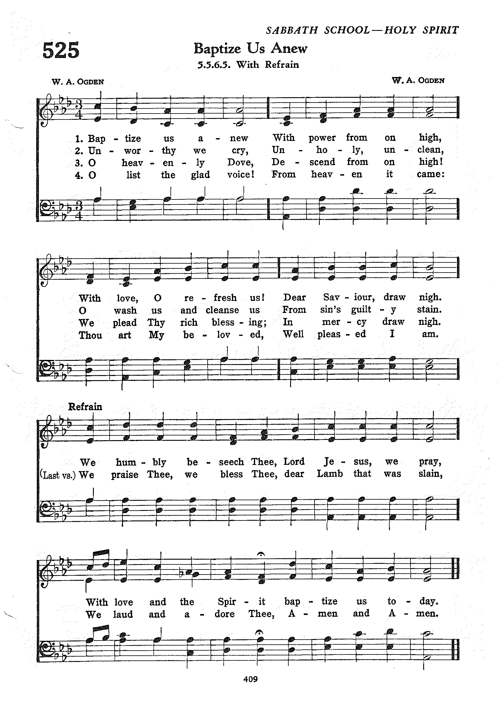 “Baptize Us Anew” is a devotional hymn by W. A. Ogden that invites believers to seek a fresh outpouring of God’s grace through spiritual renewal and consecration. The hymn focuses on the theme of cleansing, dedication, and transformation, drawing inspiration from biblical passages that describe the work of the Holy Spirit in the life of the believer. In particular, it echoes John the Baptist’s promise of a baptism with the Holy Spirit and fire, calling Christians to examine their hearts and approach God with a desire for purification and renewed commitment. Ogden’s hymn emphasizes the ongoing nature of spiritual growth, encouraging worshippers to seek God’s renewing presence continually rather than viewing baptism or consecration as a one-time event.