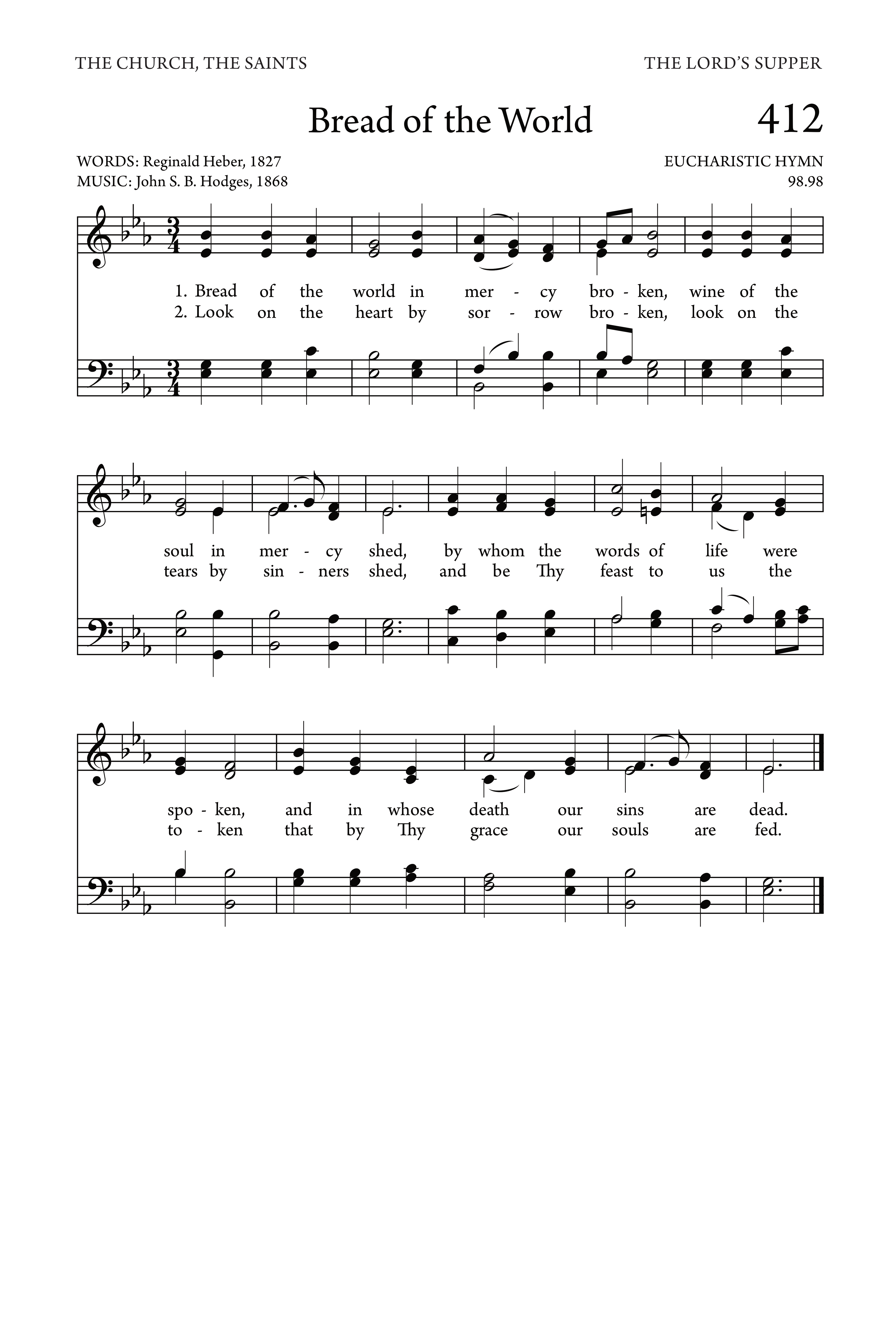 Heber’s work also serves as a call to unity and fellowship, as the act of partaking in the bread symbolizes shared communion among the faithful. The hymn’s meditative tone and rhythmic structure make it suitable for congregational singing as well as private devotion, allowing worshippers to enter into a contemplative experience of God’s mercy.