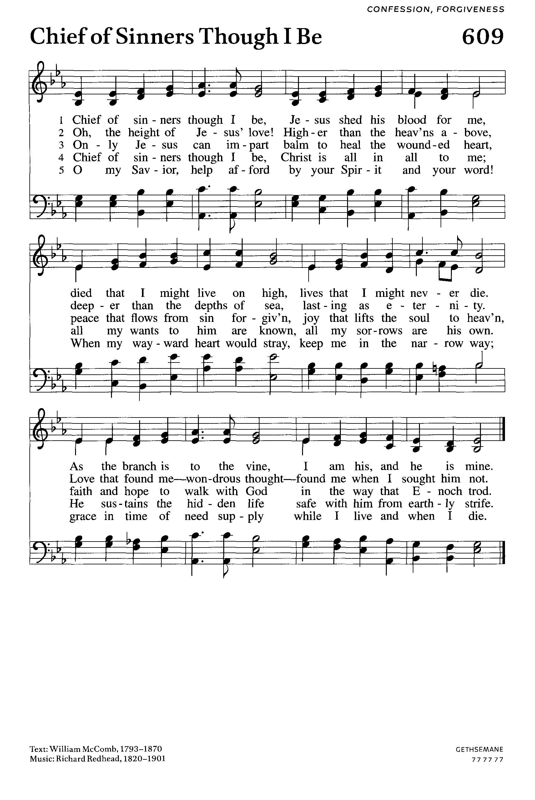 “Chief of Sinners Though I Be” has remained a treasured hymn because it speaks honestly about human frailty while exalting the all sufficient love of Christ. It is a hymn that draws the repentant heart to the cross and invites every believer to trust fully in the One who came to seek and to save the lost.