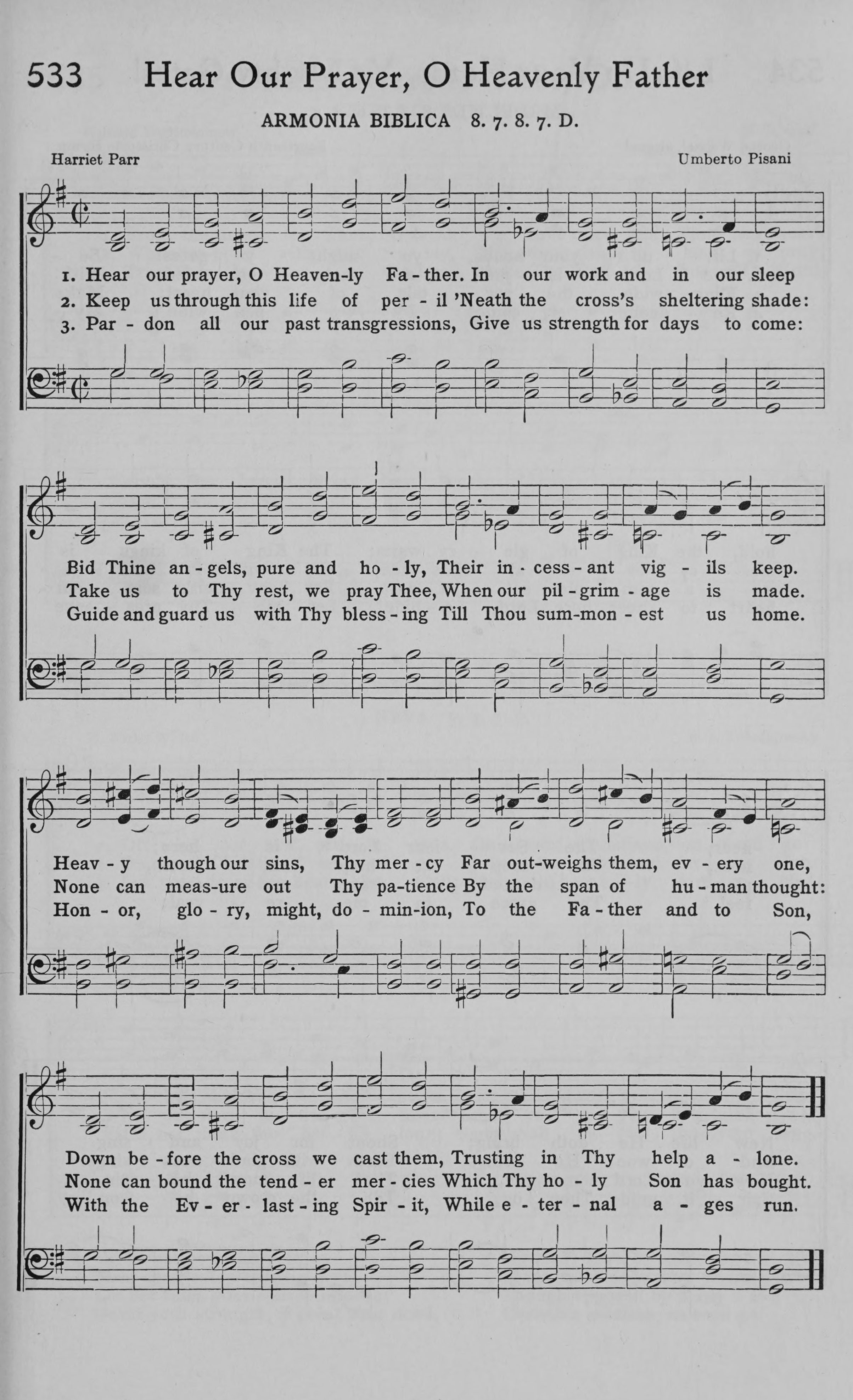 “Hear Our Prayer, O Heavenly Father” was written by Harriet Parr in 1856 as a gentle and humble prayer hymn that leads the believer into quiet communion with God. Parr, an English writer who produced devotional poetry and hymns marked by tenderness and simplicity, crafted this hymn to help worshippers express trust in God’s attentive care. Its tone is reflective and reverent, inviting the heart to approach the Lord with confidence in His mercy.