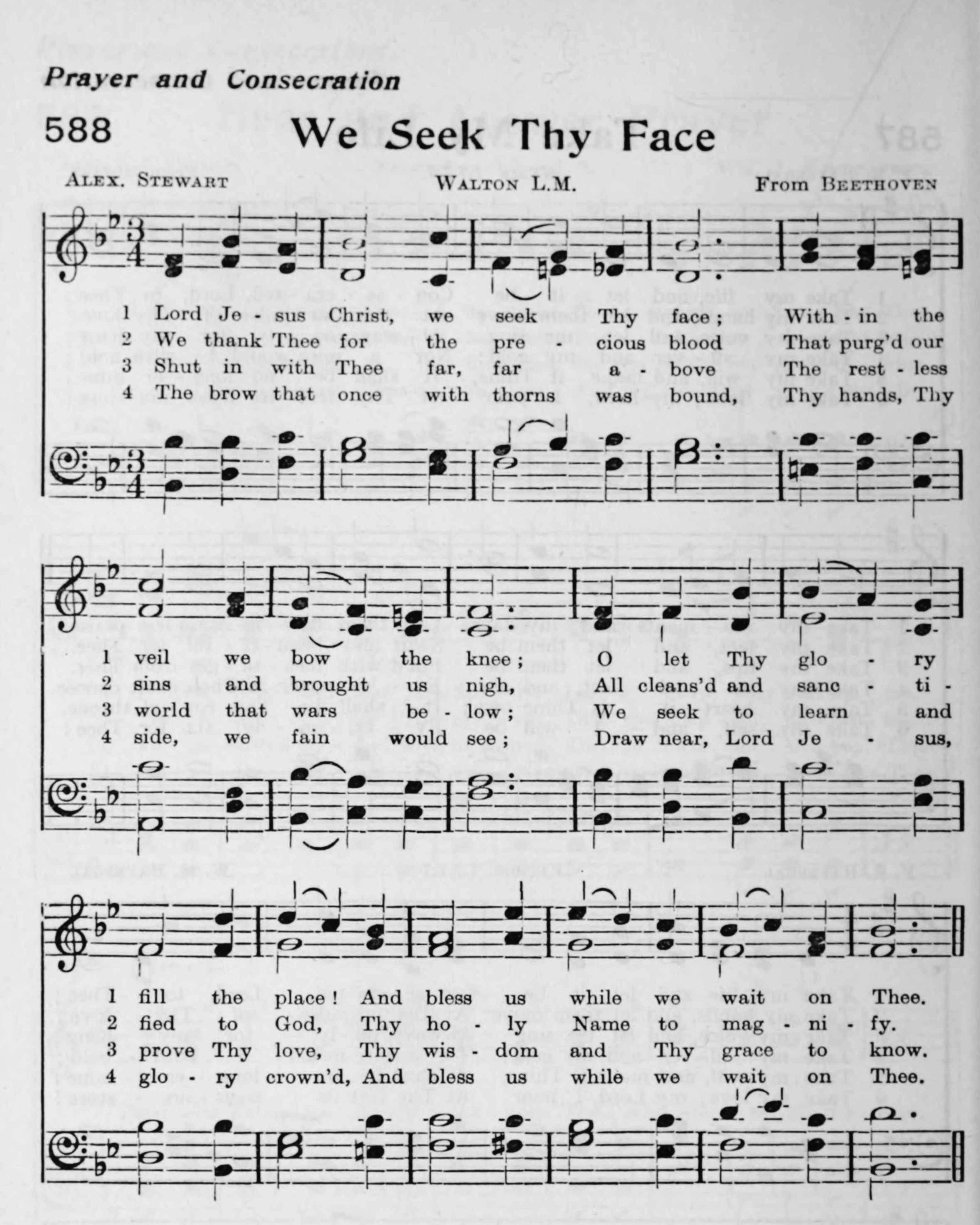 Alexander Stewart’s work exemplifies the devotional hymn tradition of the 1800s, where theology and personal piety were intertwined. “Lord Jesus Christ, We Seek Thy Face” has endured as a meaningful expression of the believer’s desire to draw near to Christ, reminding worshipers that seeking Him is both a command and a privilege.