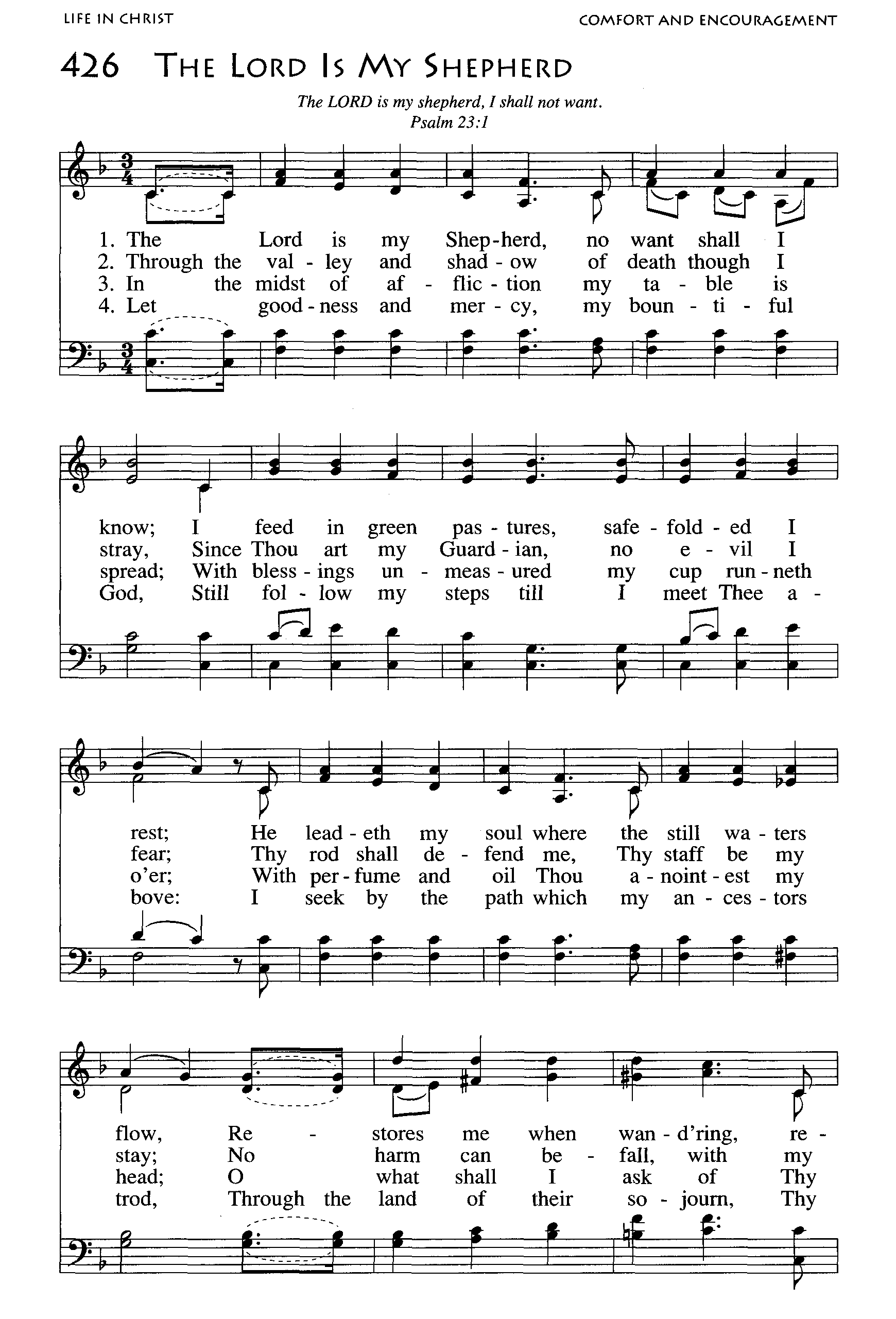 In both public worship and private devotion, “The Lord Is My Shepherd” serves as a musical expression of peace and reassurance. Its message is simple yet profound: the believer is never alone, for the Shepherd walks beside him through every trial and triumph. The hymn closes, like the psalm itself, with the confident expectation of eternal fellowship with God: “Goodness and mercy all my life shall follow me,” affirming the believer’s final rest in the Shepherd’s house forevermore.